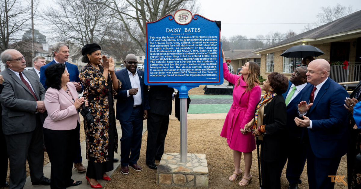“Governor Sarah Huckabee Sanders delivers remarks at the Arkansas250 Daisy Bates Historical Marker Unveiling in Little Rock,” according to the governor’s office. She was joined by Arkansas State Representatives Denise Ennett and Fred Allen, along with Daisy Bates Museum Foundation Board President Charles King and board member Mary Hardin.